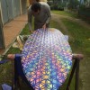 Per applicare lo stencil si consiglia di farsi aiutare da un amico e a 4 mani applicare pazientemente e con cura l’adesivo sulla base colorata, per poi con altrettanta cura togliere la pellicola trasparente, lasciando sulla base lo stencil.
