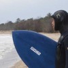 La quarta é un fish 5’7” la dima è più o meno quella degli storici fish dello shaper dell’area di San Diego, Steve Lis, solo un pelo più stretto nel tail, rail più affilato e un pelino di volume centrale in più. Grazie a questo la tavola può essere usata molto sui rail senza perdere l’aggancio in acqua, l’ho usata sia su mezzo metro, sia quasi ad altezza testa fin ora e sono davvero fiero di quello che ho sotto i piedi in entrambi le situazioni.