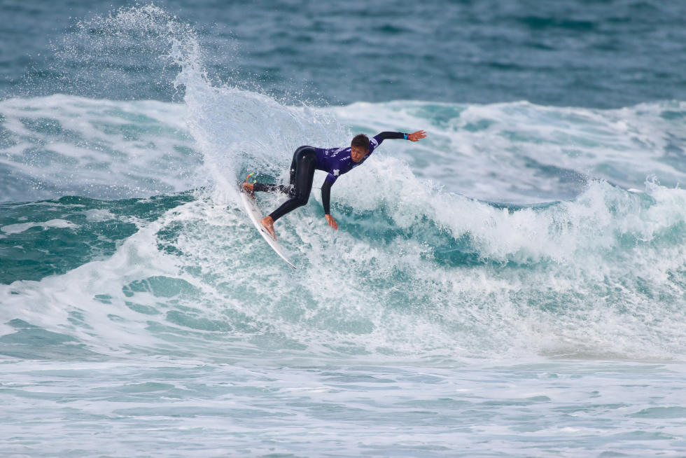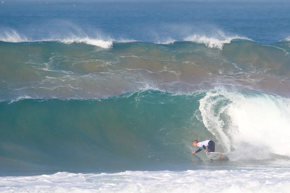 Luis Perlorio ha conquistato un posto in semifinale supportato dal tifo locale. Foto Masurel/WSL