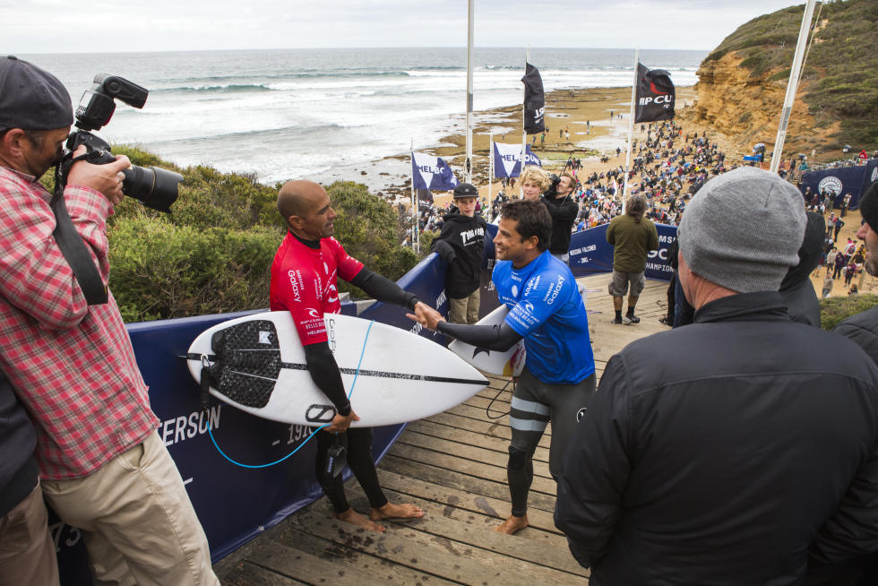 Heat 10: Michel Bourez (PYF) 14.83 def. Kelly Slater (USA) 13.70