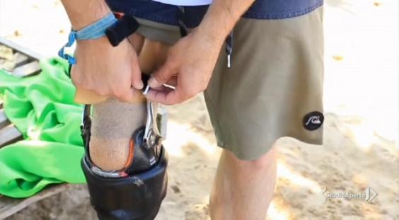 Dopo pochi giorni dal suo arrivo e poche sessioni di surf Fabrizio ha perso in mare la sua protesi. Solo grazie all’aiuto di Marco Avaro dell’Open BioMedical Initiative, è riuscito ad avere una nuova protesi in carbonio in tempi record.