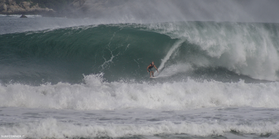 Eugenio è sempre stato attirato dai grandi tubi e fin dall’inizio ha bruciato le tappe facendo la gavetta su onde ai tempi impensabili per un surfista italiano, come Teahupoo. Per questo, sulla sua strada verso la California, dove ha un progetto legato alla sua altra passione da videomaker, ha fatto tappa in Messico, insieme altri due eccentrici videomaker e surfer italiani, Nils Astrologo e Lorenzo Marzocca, giusto in tempo per incrociare almeno un paio di grosse swell estive su cui prendere poter prendere più confidenza e alimentare la sua crescita come big wave rider.