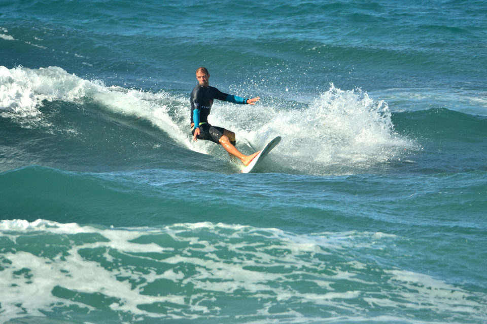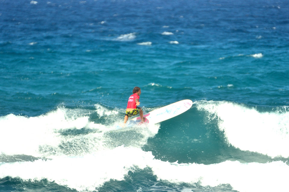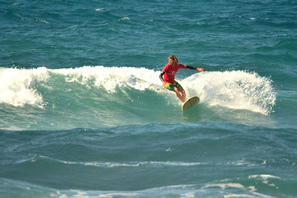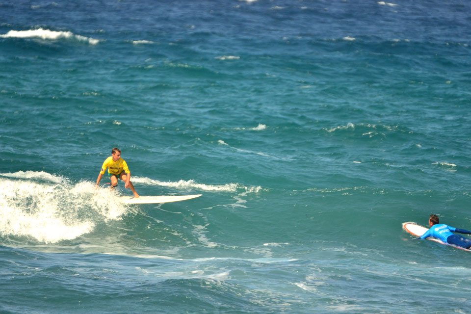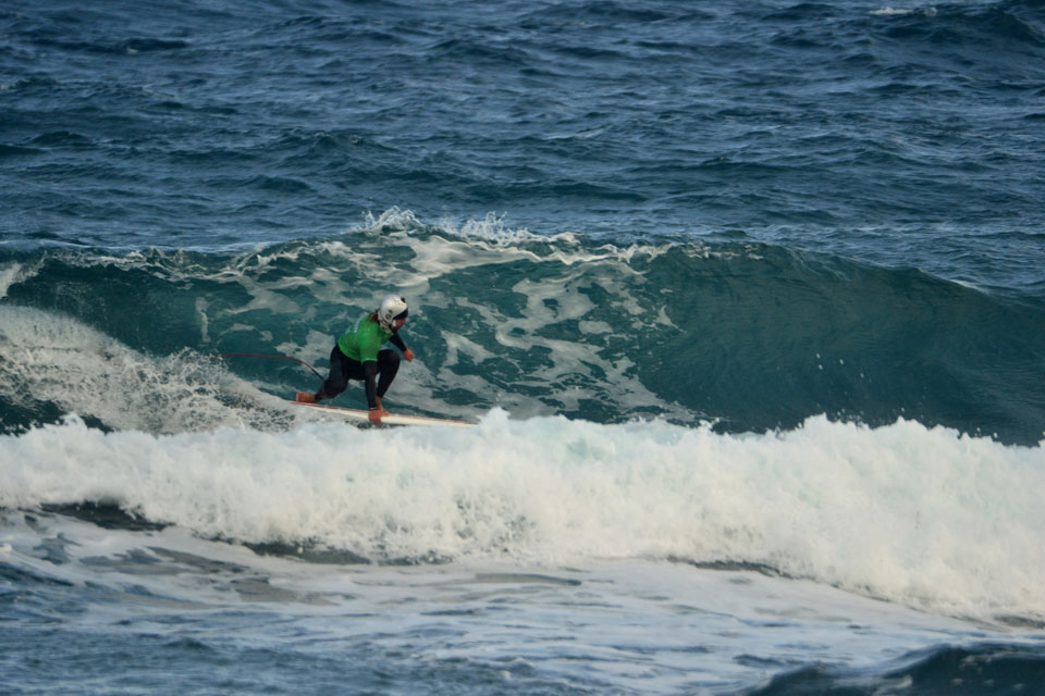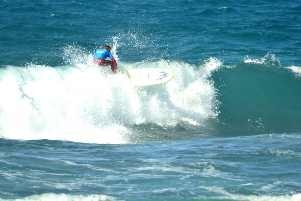 A seguito di un meeting con gli atleti, tuttavia, considerando le esigenze di tutti – e con particolare riguardo verso chi si era dovuto assentare da lavoro per disputare la gara – il boss de Li Junchi Longboard ha deciso di non spostare l’evento al giorno successivo, ma di attendere che il vento diminuisse di intensità, al fine di disputare al meglio il contest. Nelle prime heat solo i più attenti e caparbi hanno scelto buone onde aggiudicandosi il turno successivo e il regalo finale di Poseidone: una finale di 40 minuti con onde alte e lunghe, anche se frastagliate, che consentivano ai più audaci di sciorinare una manovra dopo l’altra entusiasmando il pubblico.