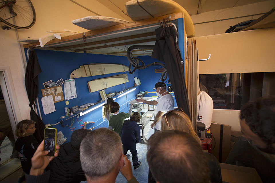Non capita tutti i giorni di poter condividere l’esperienza di un grande shaper e poterlo ammirare all’opera dal vivo, osservando il suo modo di lavorare e cercando di imparare qualche segreto che solo anni e anni di esperienza sono in grado di maturare.
