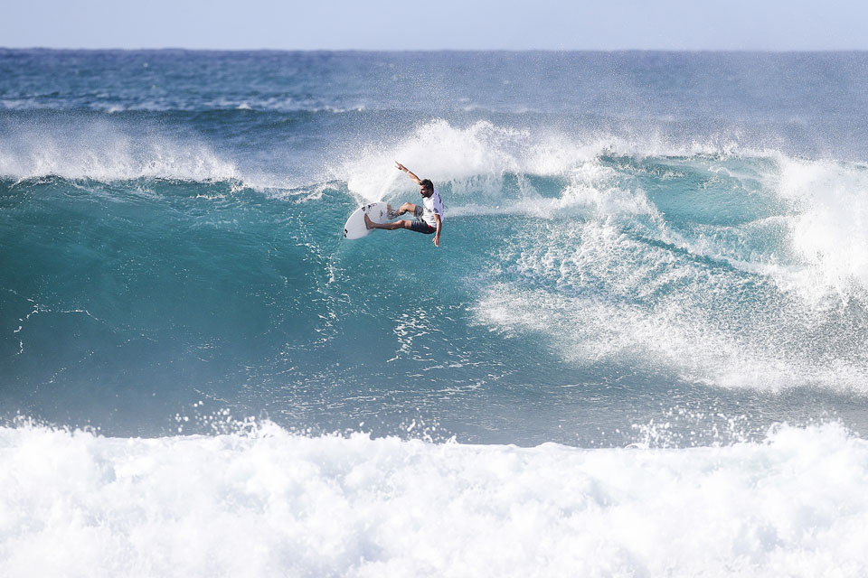 Cover shot: Leonardo Fioravanti durante il questo round dell’Hawaiian Pro. Foto WSL/Heff