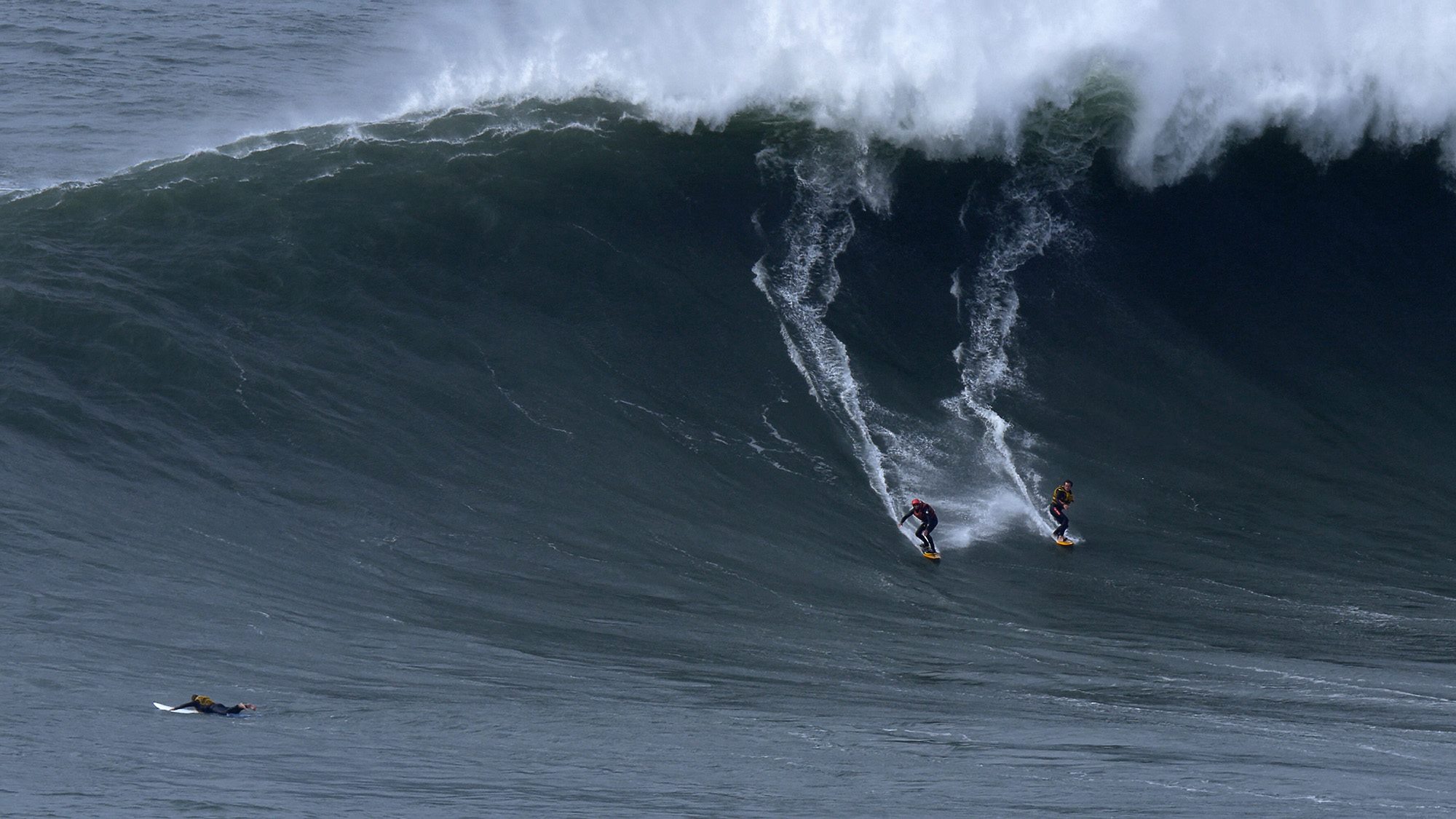 Alessandro Marcianò ha prima fatto da sicurezza in sella al suo jet-ski per i suoi compagni di team, poi si è lanciato su una delle onde più grandi della giornata riuscendo a cavalcarla fino alla fine senza cadere. Questa discesa è stata particolarmente pericolosa perché accanto all’italiano c’era il brasiliano Alemao, molto vicino e quindi molto pericoloso in caso di caduta. Le foto della stessa onda sono state pubblicate su una gallery dell’autorevole The Guardian ( https://www.theguardian.com/sport/gallery/2016/nov/20/surfers-tackle-big-waves-at-portugals-praia-do-norte-in-pictures )