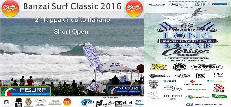 Banzai Surf Club e Trabucco Surf Club presentano la finale longboard del campionato italiano 2016 che si svolgerà a Banzai in concomitanza con la seconda tappa del campionato shortboard Open. Il waiting period è già iniziato l’1 dicembre e proseguirà fino al 30 gennaio 2017.