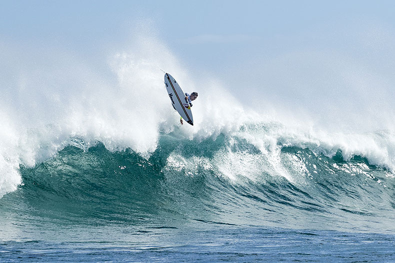 Cover photo: Leonardo Fioravanti sull’unica onda che ha preso durante la sua heat ha cercato di cambiarne le sorti sparando un air reverse stellare ma purtroppo non chiuso. Foto Cestari/ WSL