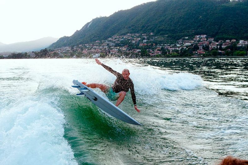 Di recente abbiamo visto molti surfer professionisti cimentarsi in questa disciplina (tra tutti Josh Kerr), e sono stati proprio alcuni dei suoi video a spingere Angelo a voler esplorare le possibilità del wake-surf come allenamento lontano dal mare.