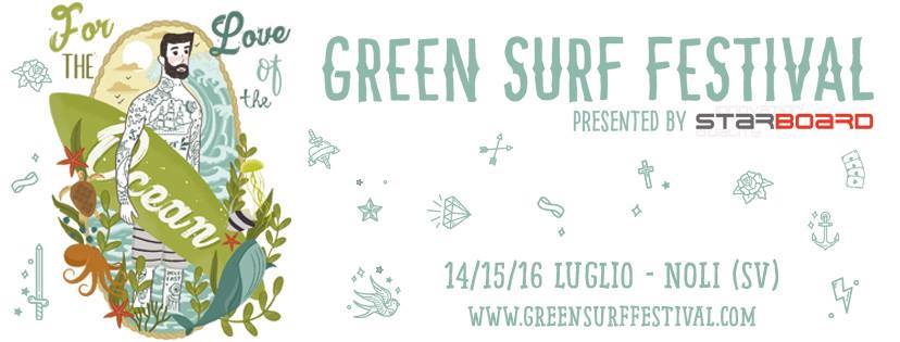 Si svolgerà a Noli (SV) il 14-15-16 Luglio 2017. Il Green Surf Festival è il primo evento Green di surf in Italia. Tre giorni dedicati al Surf e allo Stand Up Paddle (SUP) con lo scopo di sensibilizzare sul tema della sostenibilità e di uno stile di vita attivo.