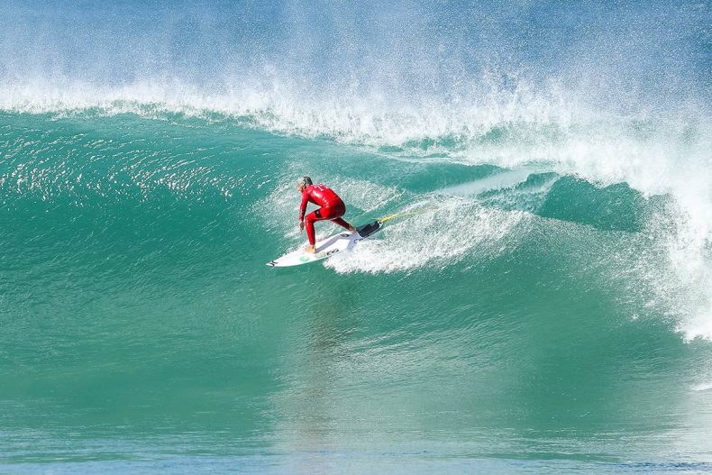 Leo ha aperto subito con un 8.50 surfando con stile, radicalità e potenza la sua prima onda, seguita da una seconda onda con un “double barrel” che gli ha garantito un 8.13, acquisendo subito il controllo della heat.