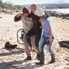 Kelly Slater accompagnato fuori dall’acqua dopo l’infortunio. Foto Steve Sherman