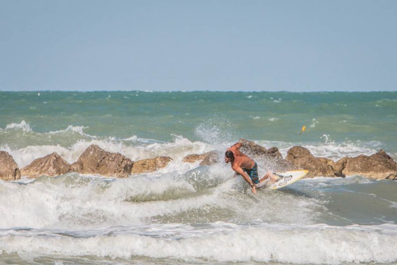 Roberto D’Amico sfrutta le onde di domenica in uno spot riparato dal vento. Foto Graziano Duca