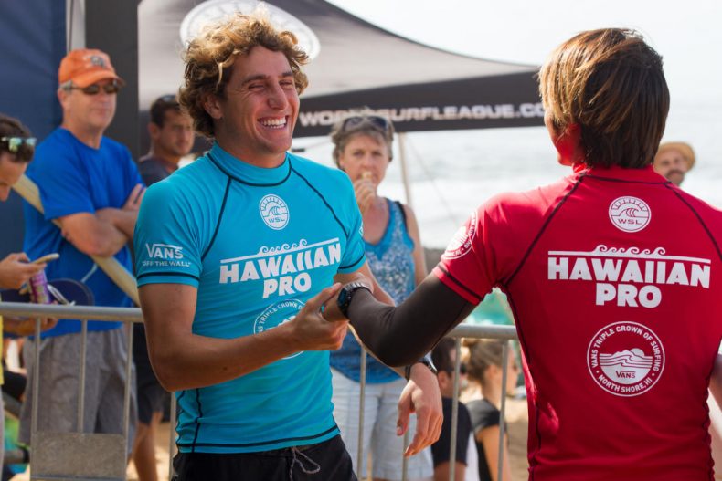 All’Hawaian Pro ci sono la metà degli atleti del WCT più tutti i più forti del QS con il coltello tra i denti per conquistare un posto nell’elite del Tour mondiale 2018. Ai quarti Leo si è ritrovato con Filipe Toledo e Jordy Smith e non è riuscito a entrare in gioco, dovendo accontentarsi di un 13esimo posto e 3600 punti, che gli permettono di risalire ancora 12 posizioni nel QS ma non sono sufficienti a dargli la sicurezza di un posto nel CT.