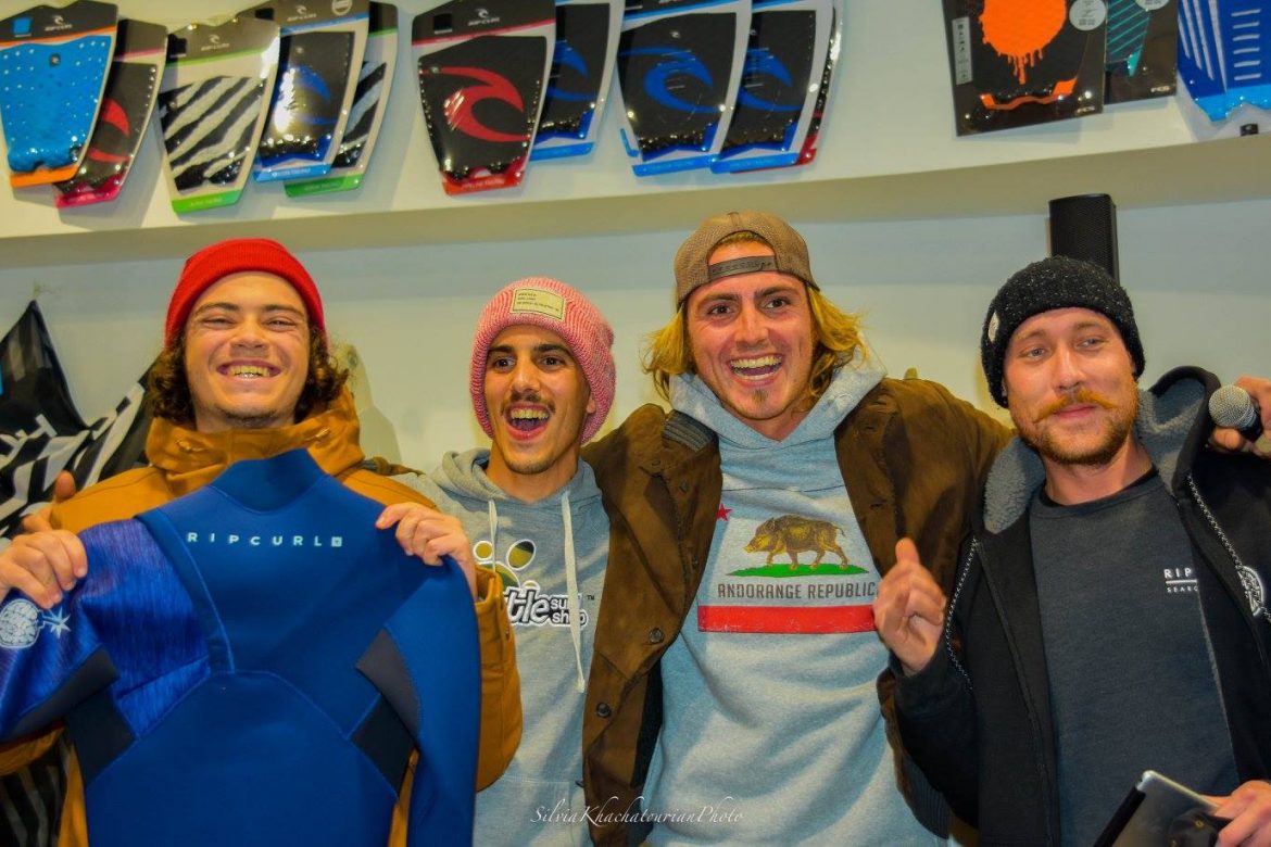 L’ultimo stop del tour si è svolto nella ridente cittadina di Andora dove tutta la crew del Turtle è stata fantastica per l’accoglienza, assente solo Paolo Colombini per il suo addio al celibato e quindi giustificato. Piccole onde per il long, foto di rito, signature session, live music e la consueta estrazione con i premi Rip curl.