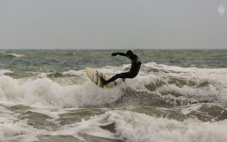 Certo, potevamo sperare in condizioni migliori, ma noi siamo già contenti quando vediamo che non è piatto, che qualcosa c’è ed è surfabile, non importa se la maggior parte delle onde sono chiusoni, se lo Scirocco picchia duro, quello che conta è entrare in acqua dopo tanto tempo.