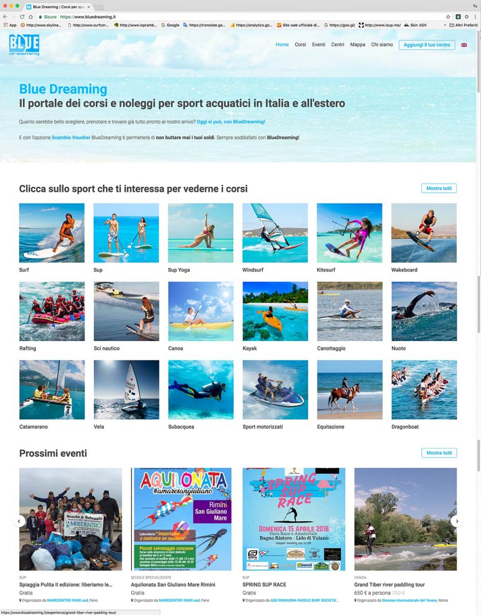 Blue Dreaming è l’anello di congiunzione tra chi vuole fare sport acquatici e chi li propone, un po’ come Tripadvisor e Booking lo sono per chi cerca una struttura ricettiva. Infatti è inutile avere una bella scuola, magari anche un bellissimo sito web, se poi non ti presenti al mondo attraverso qualcuno che tratta proprio i tuoi servizi.