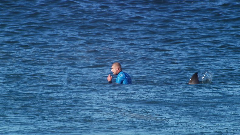 Fanning attaccato da un grosso squalo bianco a Jeffrey’s Bay nel 2015.