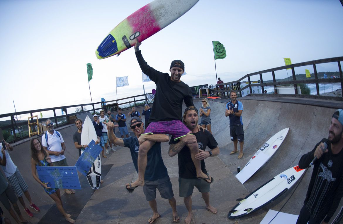 Alla Marinedda c’era tutto il gotha del surf italiano, con una finale – e la prima posizione – che si è decisa però solo negli ultimi minuti. A vincere è stato Ramon Taliani, classe 1991, italiano che vive a Santa Teresa in Costa Rica e che ha premuto sull’acceleratore per tutta la durata della gara, andando a conquistarsi con muscoli, tattica e tecnica la quindicesima edizione. Immediatamente dietro di lui, a una manciata di centesimi, il sardo Alessandro Piu, vincitore nell’edizione 2016; terzo un altro residente costaricano, Angelo Bonomelli, che invece ha vinto il contest l’anno scorso, attualmente difensore del titolo di campione italiano. Al quarto posto Simone Fabiani.