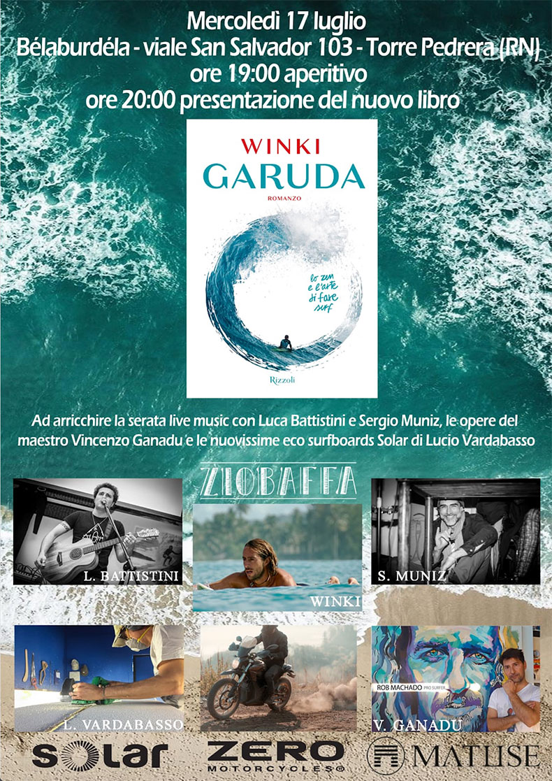 A 17 anni dal primo libro, Winki presenta il suo quinto nuovo libro, Garuda lo Zen e l’arte di fare surf, un’avventura in Indonesia con un messaggio per il pianeta. Ne abbiamo parlato con l’autore.