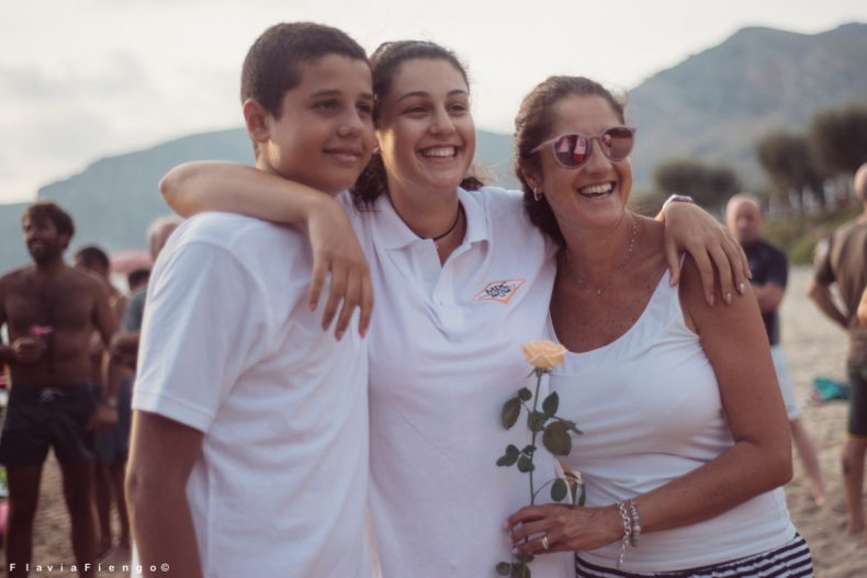In mare si sono riunite tutte le tavole, come in un grande e amorevole abbraccio, attorno ai figli di zio Leo, Lucrezia e Nicolò, che hanno lasciato tra le onde tanto amate dal papà una corona di fiori, simbolo del grande affetto e della stima di tutti i surfisti partecipanti.