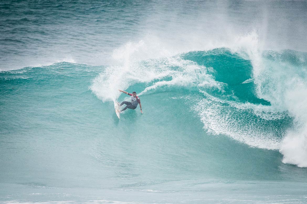 Inaugurata la terza tappa del leg australiano WSL a Margaret River in Western Australia. Leonardo Fioravanti a suo agio sulle grosse onde a-la Sunset Beach avanza direttamente al terzo round.