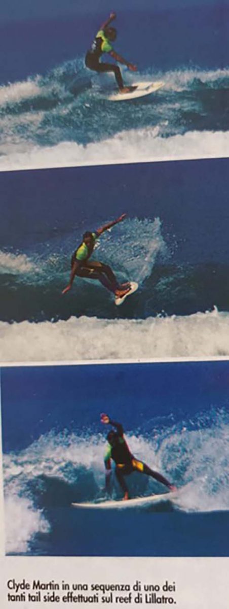 Era una mattina di aprile del 1991. Una ventina di atleti italiani provenienti da varie regioni stava osservando le onde che, spazzolate da un leggero vento di terra, si svolgevano regolari sulla secca del bagno Pinocchio, a Viareggio. Di fianco a loro c’era un’altra ventina di surfisti, anche loro intenti a valutare le onde. Solo, che questi ultimi non erano italiani. Nessuno di loro era consapevole che stavano per segnare la storia del surf italiano, protagonisti della prima gara E.P.S.A. (European Professional Surfing Association) non solo in Italia, ma dell’intero bacino mediterraneo. Inutile dire che i surfisti francesi, inglesi e baschi impressionarono gli allora “top rider” del surf italiano, ma uno in particolare apparve di un altro livello: il sudafricano CLYDE MARTIN. Due anni prima, era stato protagonista a J-Bay di un’impresa notevole, partendo da rookie e conquistando il 5° posto in una gara del mondiale. Ciò gli valse il contratto di sponsorizzazione con la Billabong. A Viareggio non gareggiò, ma si limitò a partecipare (e vincere) l’expression session e poi a fare il giudice. In seguito, per alcuni anni, Clyde visitò l’Italia alla fine del leg europeo, ovvero a ottobre. Era nata una profonda amicizia con Alessandro Dini, al tempo rappresentante per l’Italia della EPSA, oggi direttore tecnico nazionale di ACSI SURFING. E’ stato proprio Alessandro a volerlo in Italia sia per i CORSI GIUDICI, che per il primo corso SURF L2 Acsi e il concomitante ADVANCED SURFING ACADEMY di Clyde.