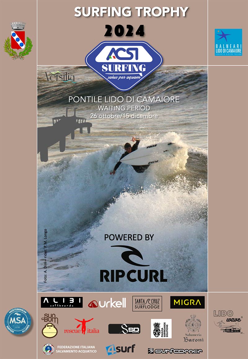 Ampio, sia in termini di quantità che di qualità, il montepremi in materiale messo a disposizione dei molti partners di Acsi Surfing, come mute invernali RIP CURL top di gamma modello.