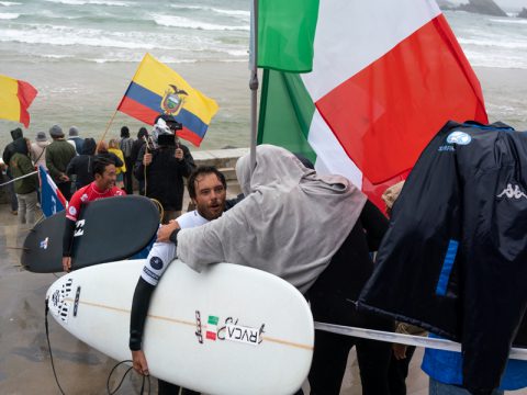 Solo Federico Nesti è rimasto in gara per difendere i colori della bandiera al termine della quinta giornata di competizioni al World Longboard Surfing Championship a Biarritz.