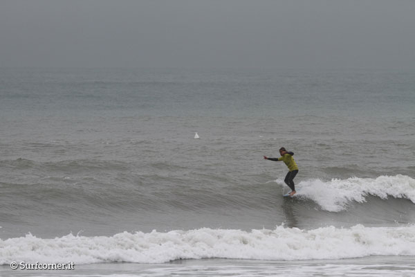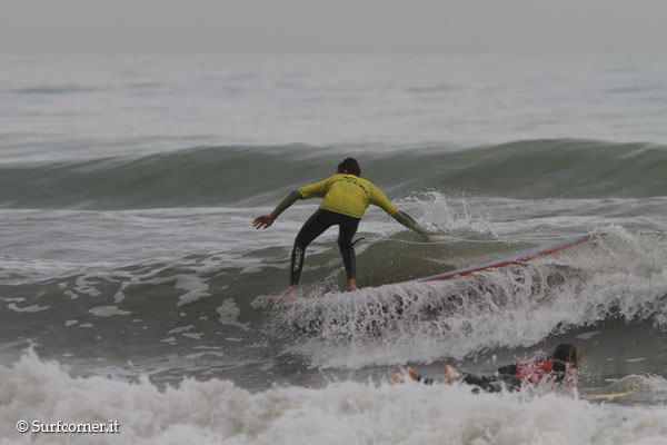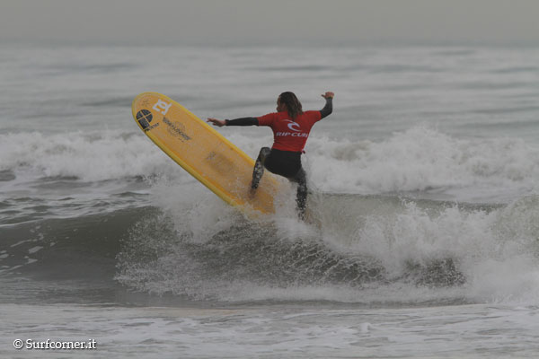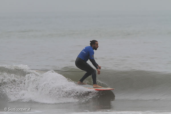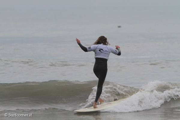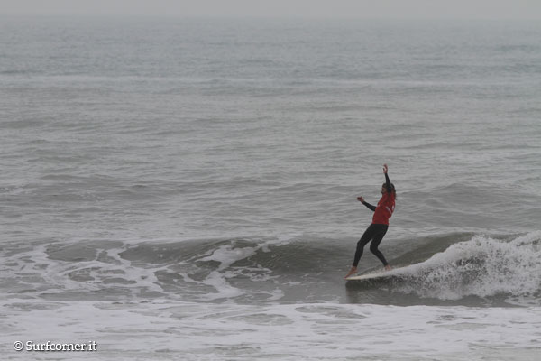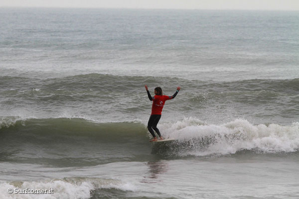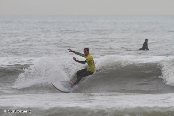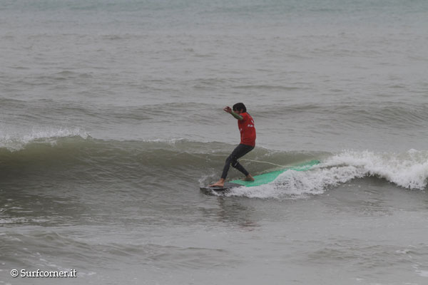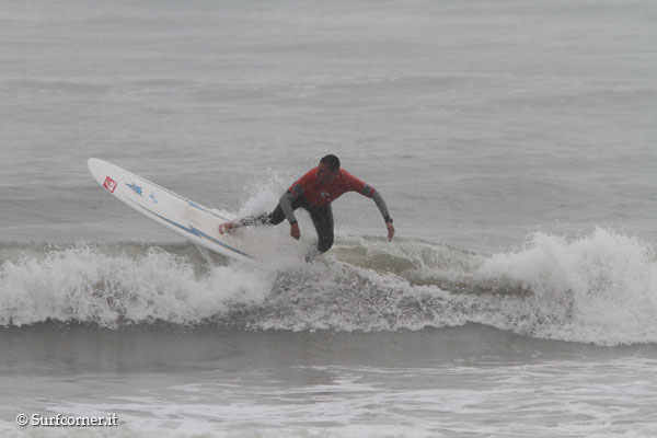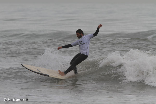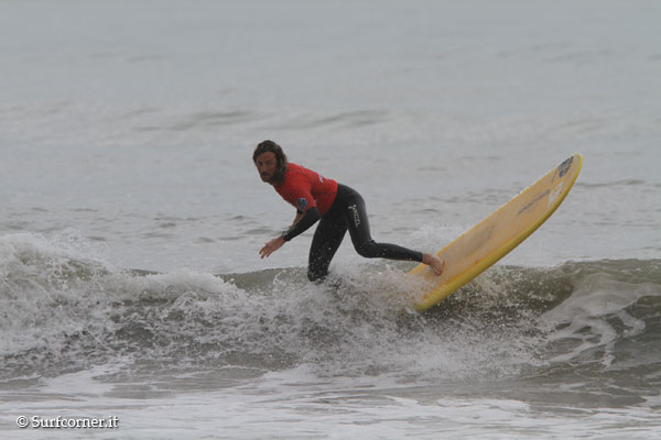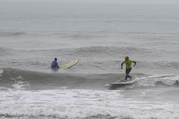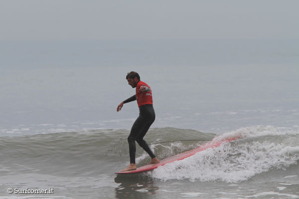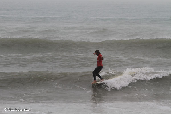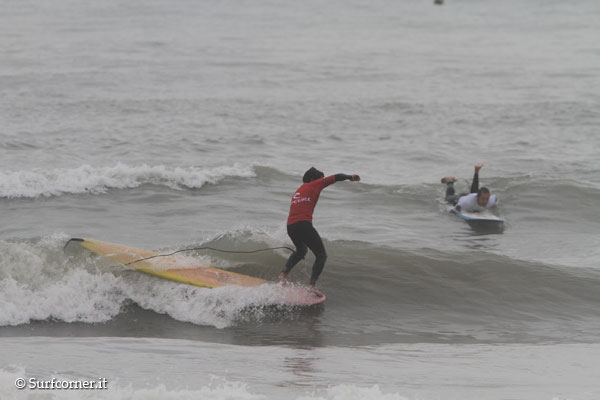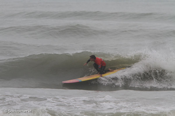 La seconda tappa del campionato italiano longboard si è svolta ieri durante una mareggiatina di scirocco con onde del mezzo metro al metro al bagno 95 di Riccione.