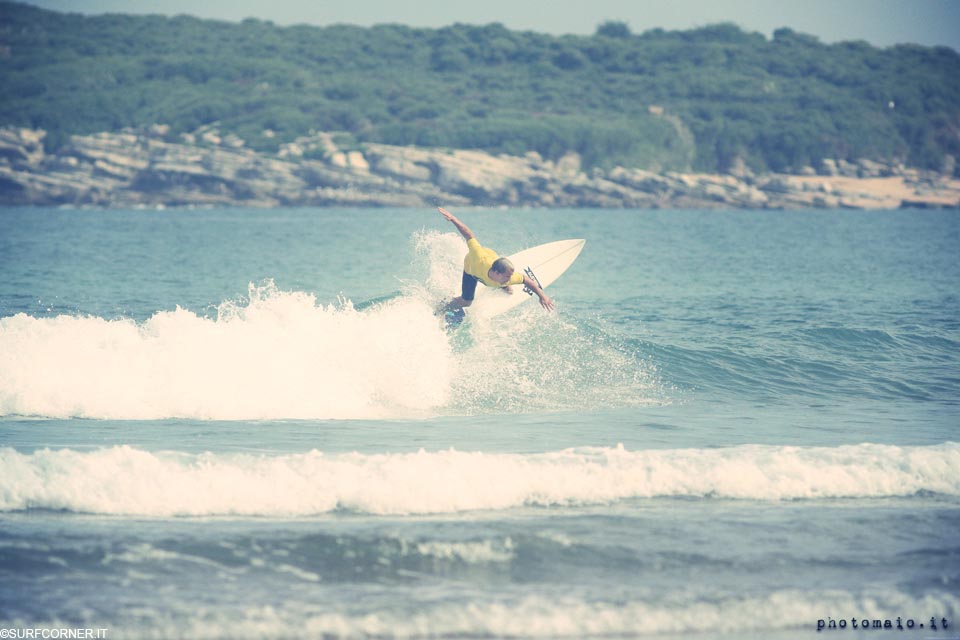 Angelo Bonomelli eccelle sulle piccole onde di Somo. Foto Alberto Maiorano