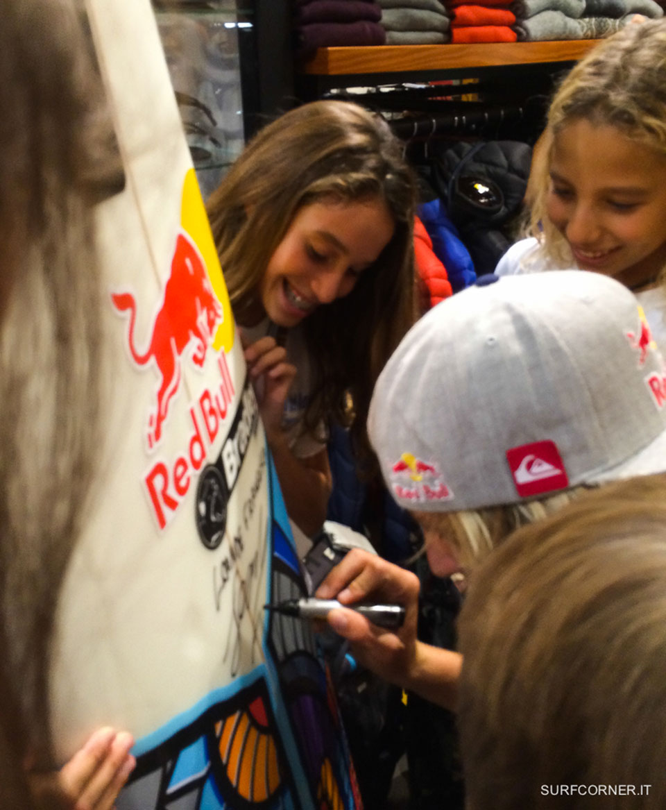 Prima di ripartire per il Portogallo dove parteciperà all’ASP World Junior, Leonardo Fioravanti ha fatto un salto a Roma con l’amico inseparabile Kanoa Igarashi per firmare autografi e regalare un paio di tavole. Il tutto al City Beach surf shop di Roma.