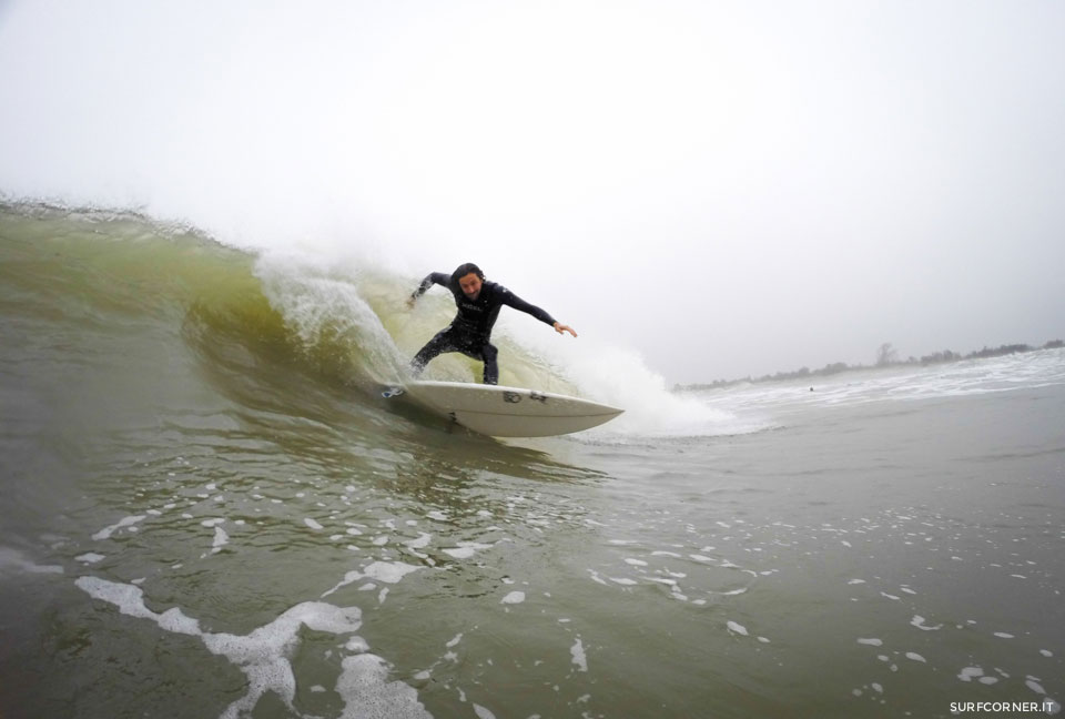 Lo scirocco è venerato dai surfisti adriatici perchè in grado di sfruttare tutto il fetch possibile ed è quello che regala le onde di maggior qualità e consistenza. Con la nebbia, la pioggia, il sole, piccolo o grosso che sia, quando c’è mare da sud est non si butta via niente…