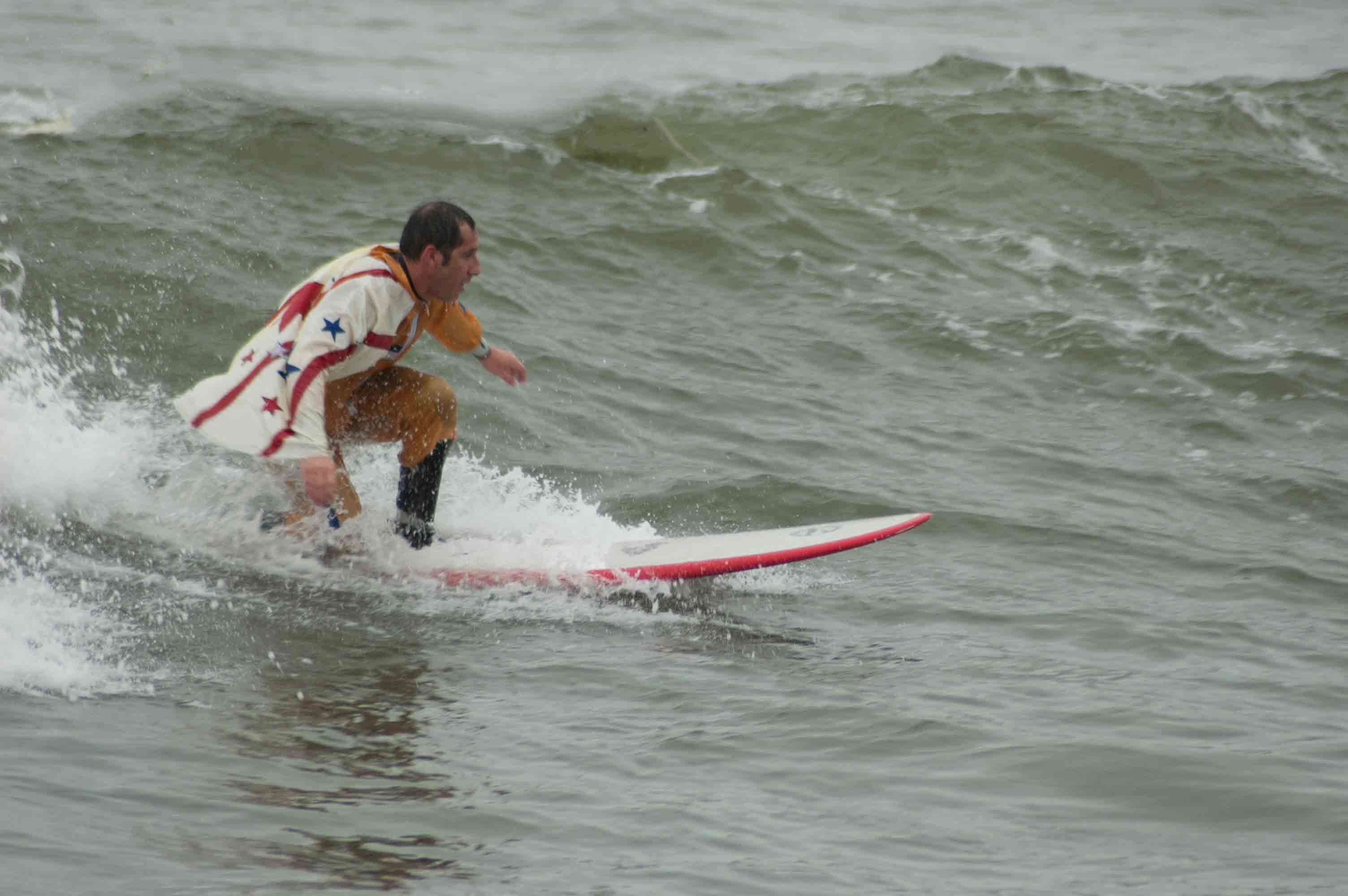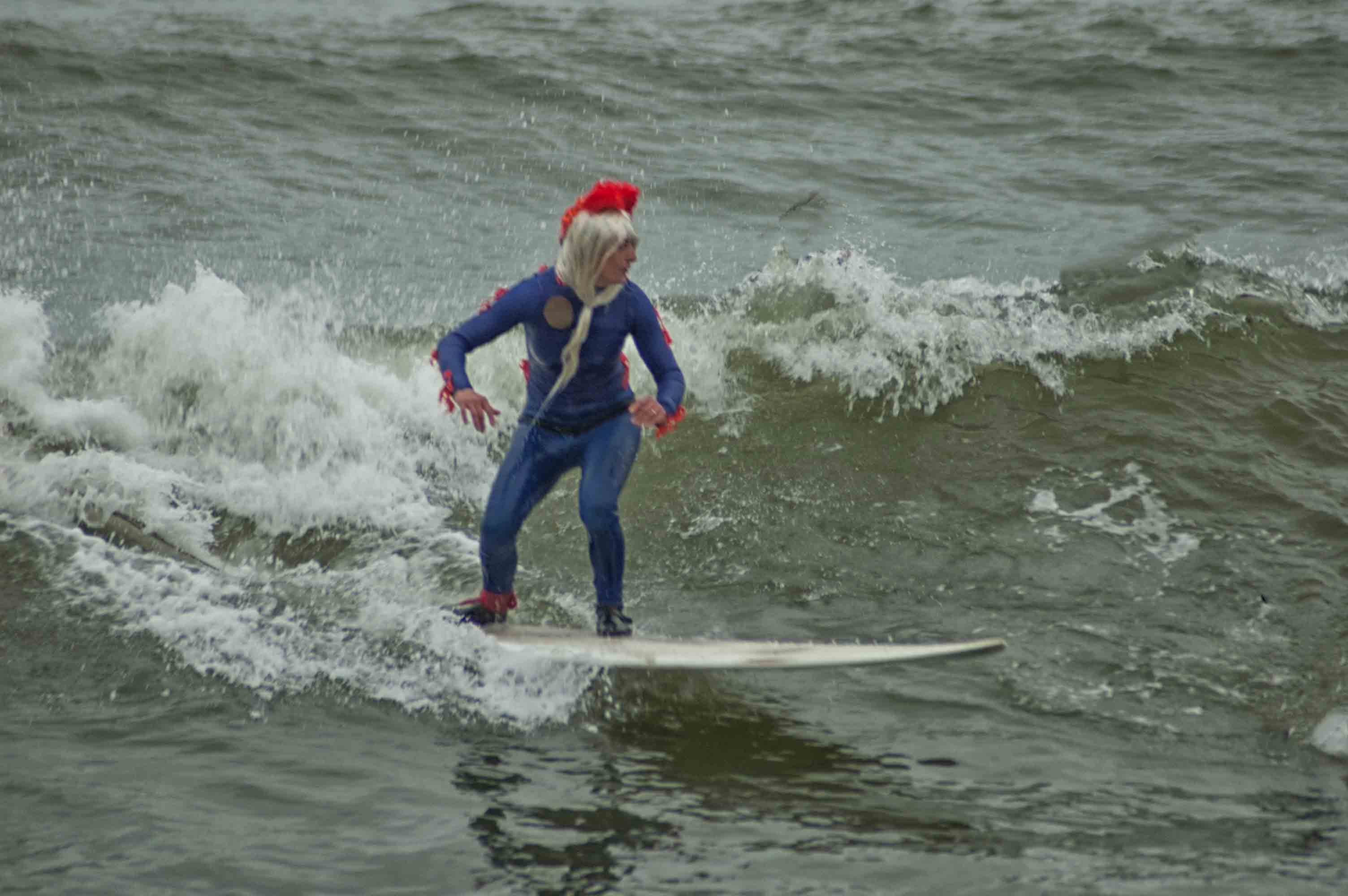 Ebbene sì, passano gli anni, cadono i capelli, si afflosciano gli addominali, qualcuno è diventato pure genitore ma resta alta la voglia goliardica di sfidare l’infinito ed affermare il proprio IO hegeliano a bordo della tavola da surf. In parola povere: “la voglia di fare i bischeri”. E’ stata una bella edizione, acqua con temperature accettabili e qualche buona onda, che ha visto la partecipazione di una ventina di maschere di altissimo livello di fronte al Molo di Viareggio.