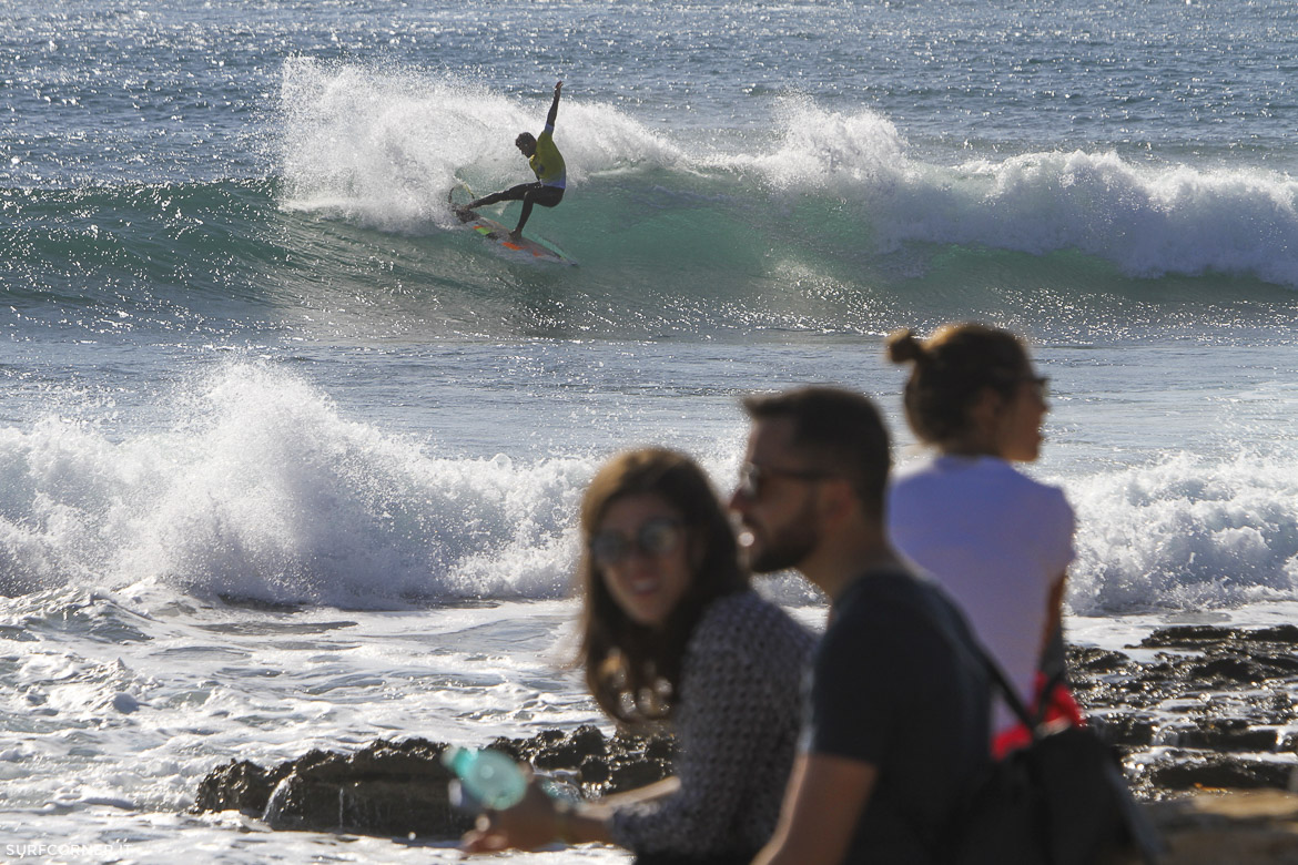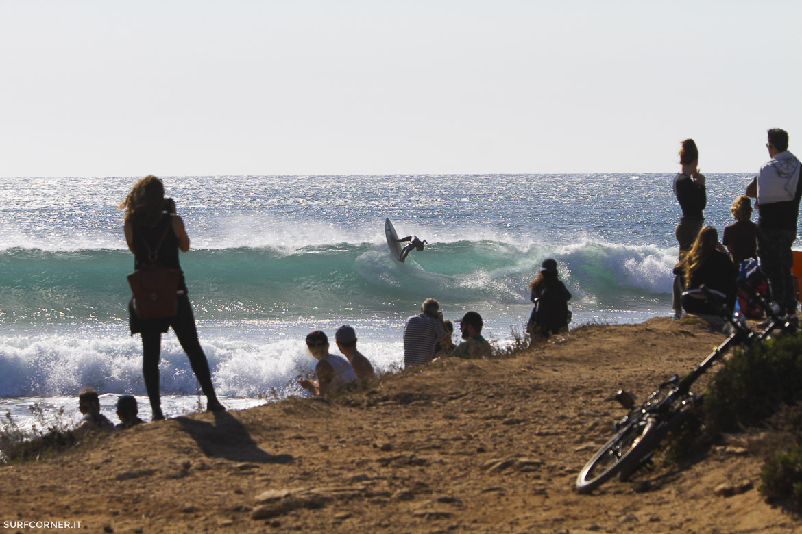 La giornata è iniziata con l’arrivo degli ultimi atleti e poi, alle 12.00 il via alle competizioni! Il Campo Gara 1, il Mini Capo, è stato interamente occupato nel corso della giornata per lo svolgimento dell’intero Round1 dello shortboard maschile.