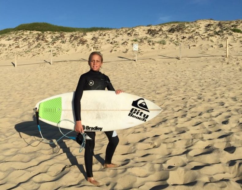 I fratellini Scoppa, 9 e 11 anni, ad Hossegor durante il Quiksilver Pro France per tifare il loro eroe Leonardo Fioravanti.
