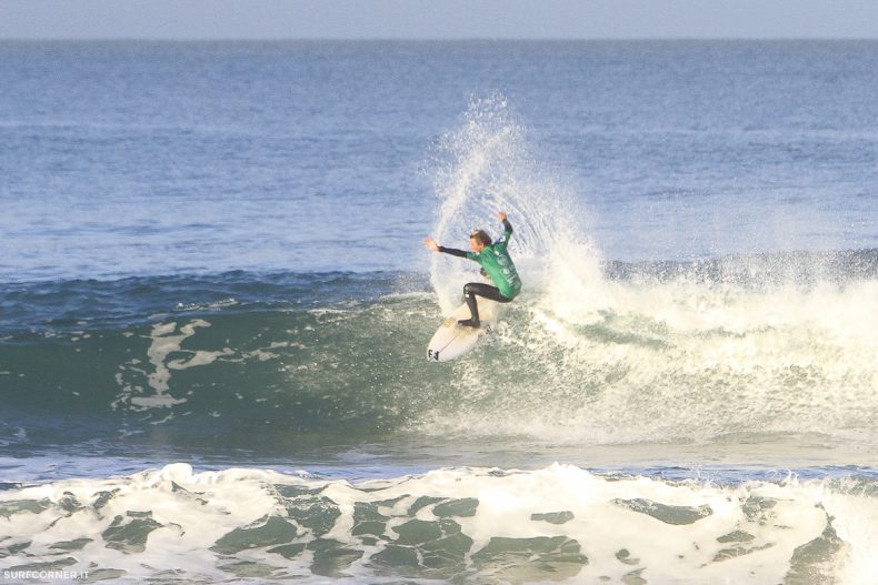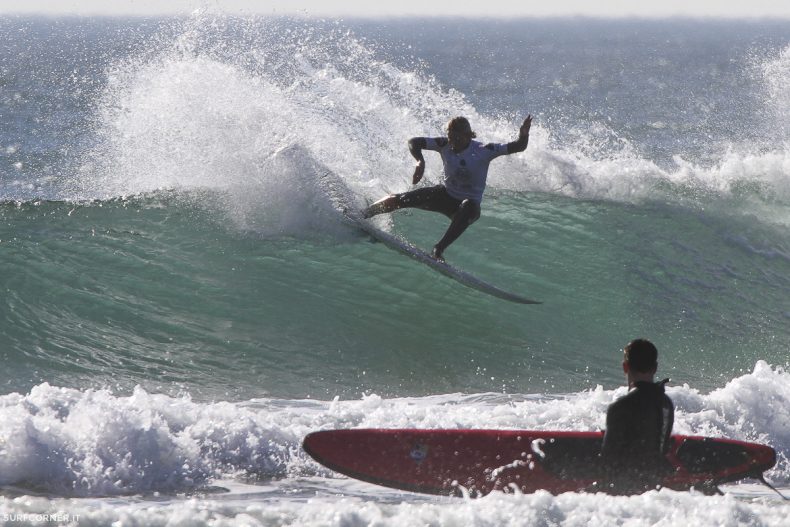 Dopo Edoardo è sceso in campo Roberto D’Amico, che è apparso in gran forma ed è stato secondo solo al tedesco Lenni Jensen, il giovane junior che in questi giorni sta impressionando anche nel Caparica Pro. D’Amico è riuscito a surfare senza errori e in modo impeccabile le piccole onde del mattino accedendo ai quarti di finale dove si dovrà scontrare con l’amico e campione in carica dell’evento Goni Zubizarreta.