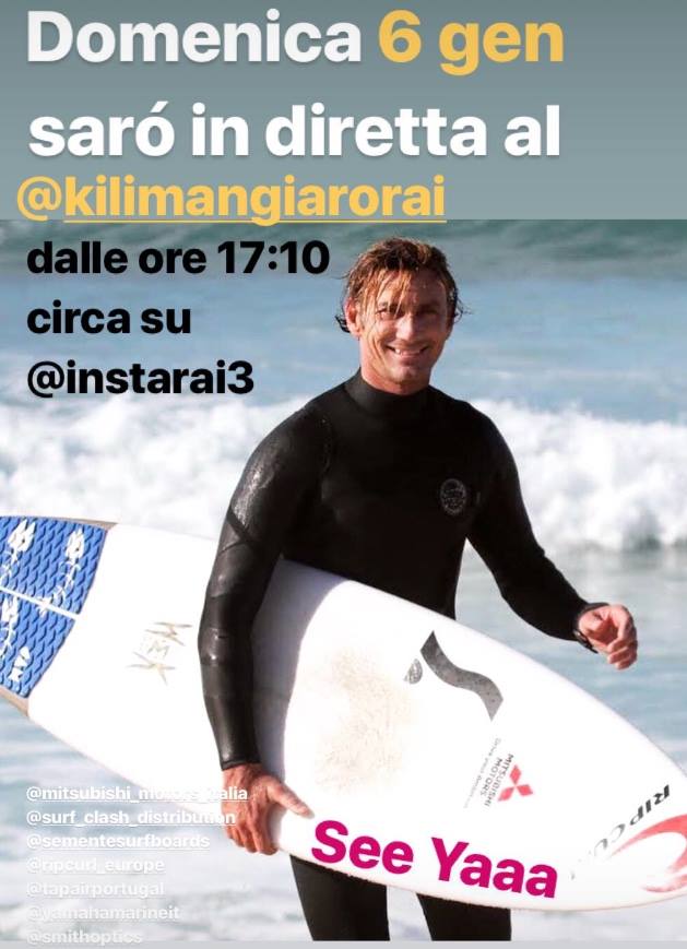 Domenica 6 gennaio dalle 17:10 circa su Rai3 durante il programma Kilimangiaro, Alessandro Marcianò sarà in diretta dal mitico Faro di Nazarè per raccontare del tremendo wipe-out dell’amico Thiago Jacaré, sopravvissuto per miracolo, tutto come sempre condito da immagini spettacolari e insieme a un ospite speciale che svelerà in trasmissione.