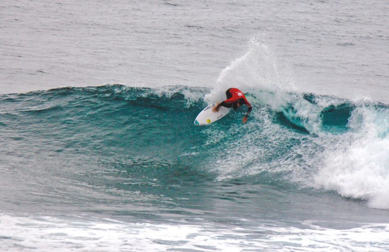 Il primo giorno di gara le condizioni erano ottime con 3/4 piedi puliti, il secondo giorno piu’ impegnative, con una mareggiata in crescita di 6/8 piedi e vento attivo in rinforzo. Partecipando in 2 categorie ha dovuto surfare molte heats back to back.