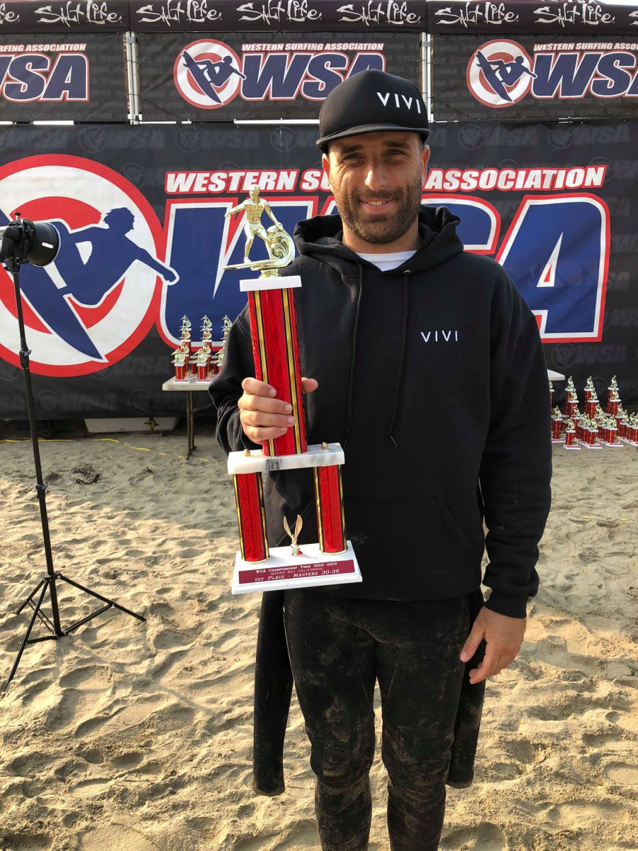 Il surfista di Anzio, trapiantato in California, ha conquistato un risultato storico mai raggiunto da un italiano con il secondo posto alla finale nazionale del campionato americano shortboard categoria masters.