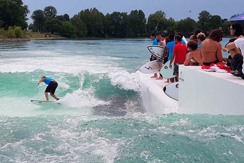 Lo scorso venerdì 21 giugno presso il Wakeparadise di Milano è stata finalmente inaugurata la prima wave pool italiana, una struttura galleggiante in grado di generare un’onda stazionaria del tutto simile alle onde da fiume, come l’Eisbach di Monaco, ma per sua intrinseca natura ovviamente ben diversa dalle onde del mare, e che proprio per questo ha scatenato i commenti negativi dei puristi.