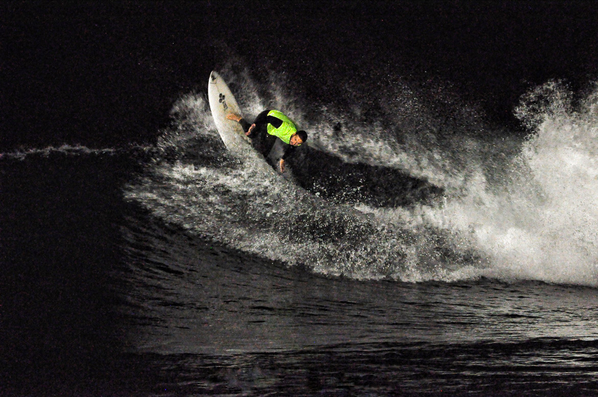 “Mi è capitato più volte di surfare di notte con le onde illuminate dal riflesso della luna,” ha scritto Filippo sul suo profilo Instagram, “ma ora qui in Liguria abbiamo il primo impianto in Europa di illuminazione per surfare in notturna. Luci a led che illuminano la parete dell’onda e ti permettono di allungare le mareggiate di qualche ora. Assolutamente da provare è un’esperienza indimenticabile.