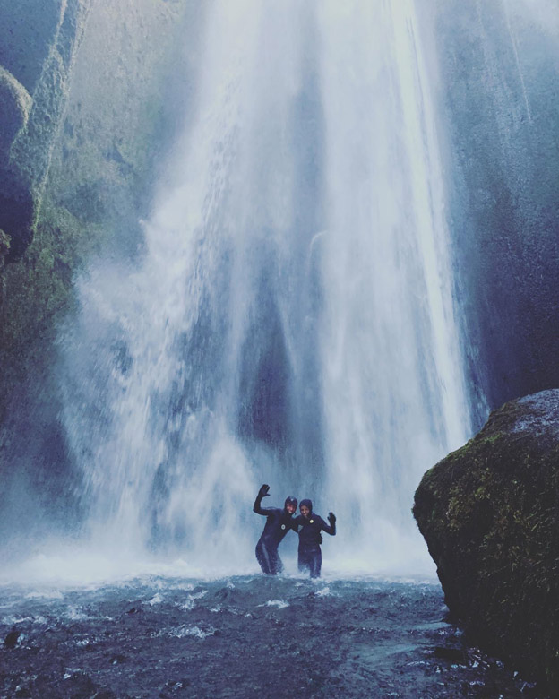 Ma prima, già che siamo bagnati e bardati come pinguini, facciamo un tuffo dietro una cascata.