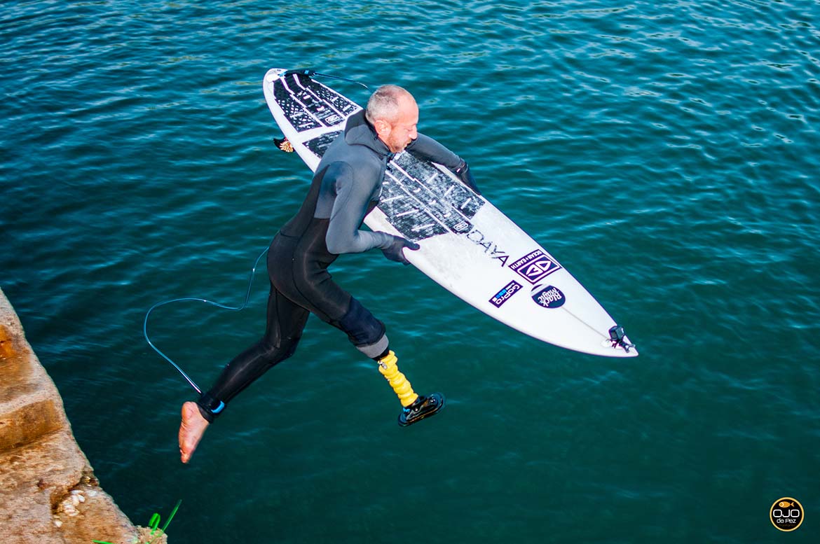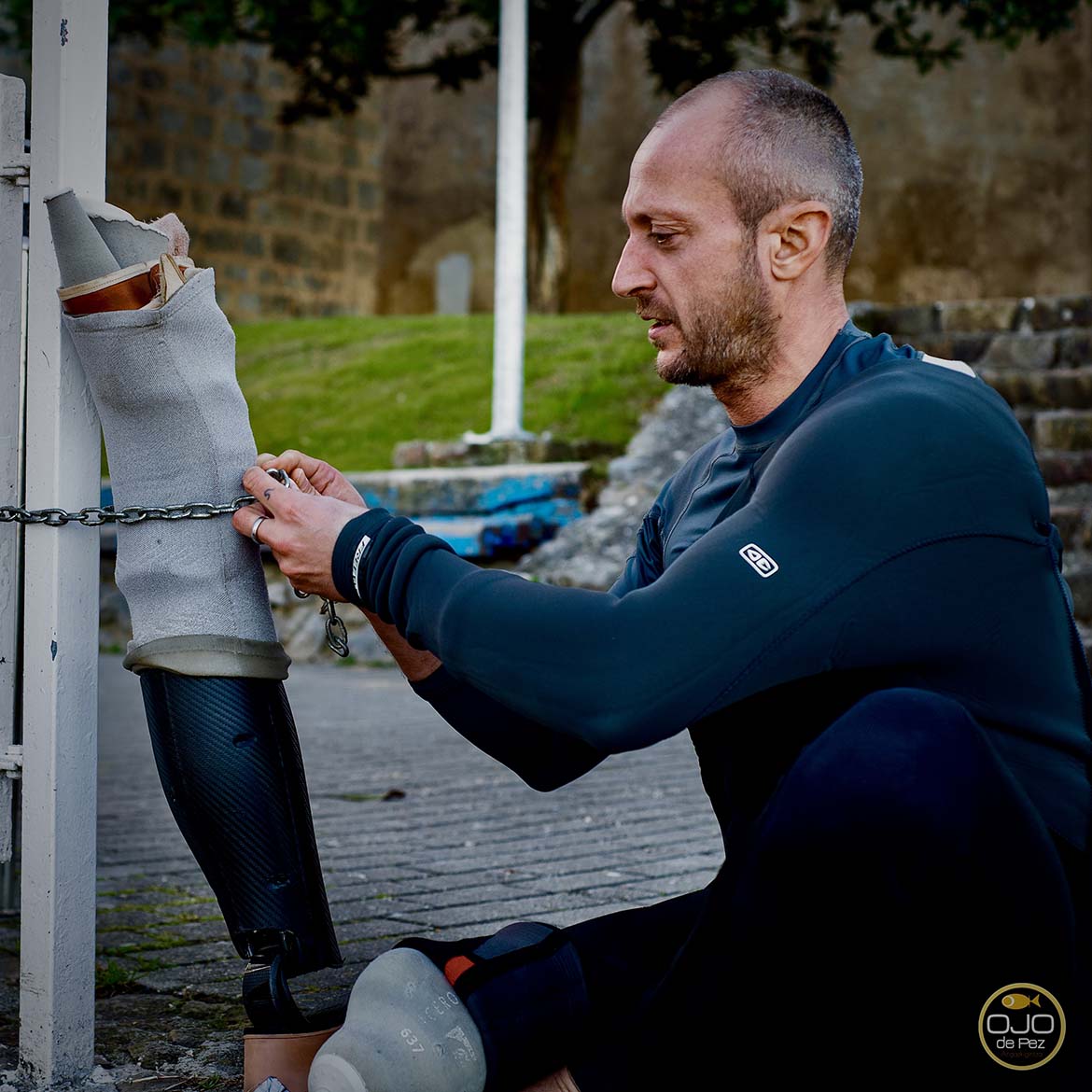 Ha dovuto lasciare in tutta fretta le sue cose a Mundaka, incatenando la protesi alla ringhiera del vialetto che si affaccia sulla famosa sinistra, come monito e gesto propiziatorio, ma sempre con l’obiettivo finale in mente, la partecipazione al Campionato Mondiale di Adaptive Surfing.