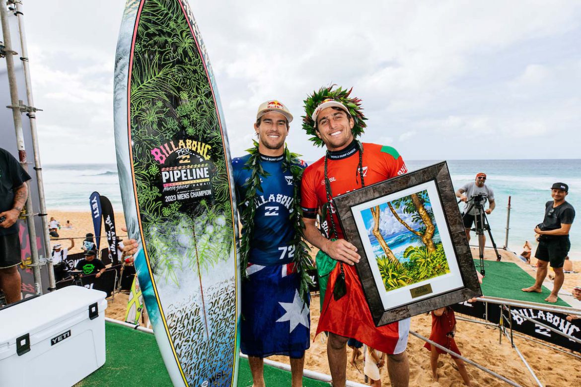 “Voglio dire, questo è un sogno che si avvera”, ha detto Fioravanti. “Sono cresciuto guardando ogni singolo evento qui da quando avevo 10 anni. Arrivare sul podio con Lyndie (Irons) qui e avere un trofeo con sopra il nome di Andy (Irons), è uno dei più grandi qui fuori, e significa tanto. Avere la mia famiglia qui e tutti quelli che mi supportano sulla spiaggia è semplicemente speciale. Questa onda mi ha mandato all’ospedale per sei mesi quando avevo 17 anni e mi ha anche dato tanto. Grazie Pipeline, grazie alla gente del posto per averci permesso di surfare quest’anno. Le Hawaii sono un posto così speciale per il surf e sono grato di essere sul podio per un evento così speciale”.