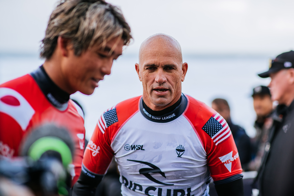 HEAT 15: Kanoa Igarashi (JPN) 13.93 DEF. Kelly Slater (USA) 10.43
