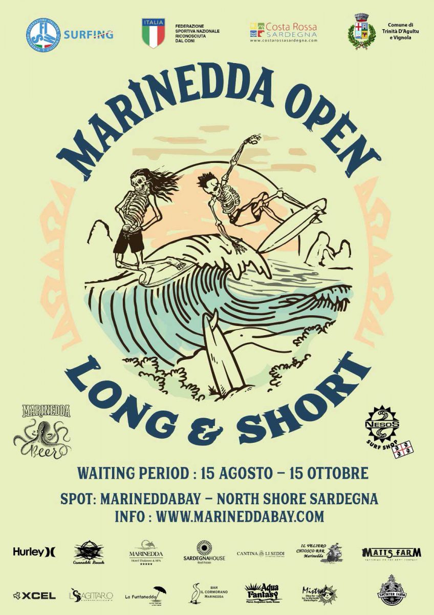 Il Marinedda Open Long&Short è organizzato con il patrocinio del Comune di Trinità d’Agultu, della FISW Surfing, di Costa Rossa Sardegna ed è supportato da Nesos Surf Shop, Marinedda Beer, Hurley, X CEL, Canneddi Beach, Marinedda Hotel Thalasso &SPA, Sardegna House Real Estate, Cantina Li Seddi, Chiosco bar il Veliero, Matt’s Farm, Ristorante il Sagittario, La Funtanedda, Bar il Cormorano, Aqua Fantasy, Chiosco Bar il Mistral, Splinter Farm.