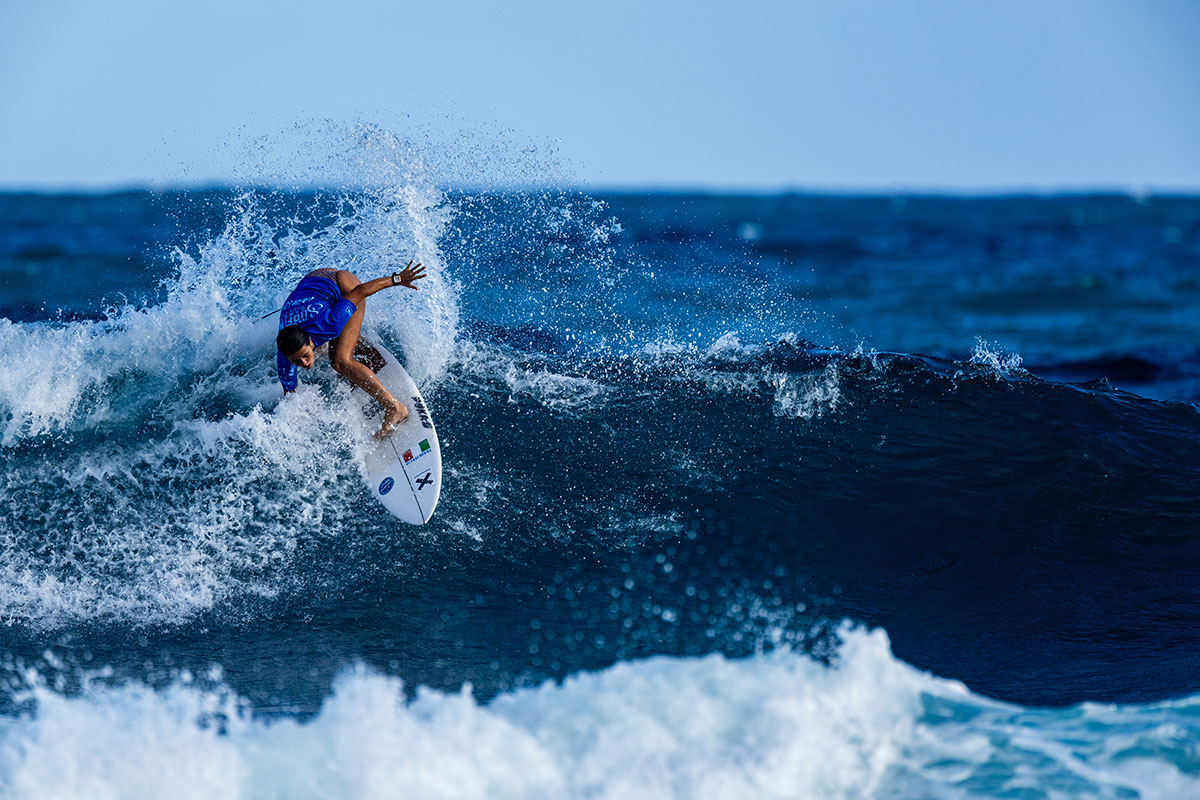 Edoardo Papa, campione italiano in carica, al secondo round del main event ha invece dovuto fare i conti con l’australiano Jack Robinson (secondo nel Championship Tour WSL) e Ramzi Boukhiam (secondo in Porto Rico, ora qualificato per Parigi). È uscito terzo a testa altissima ed è finito ai ripescaggi dove ha passato una heat ed è stato eliminato da terzo: dietro di lui anche la medaglia d’argento a Tokyo 2020 Kanoa Igarashi.