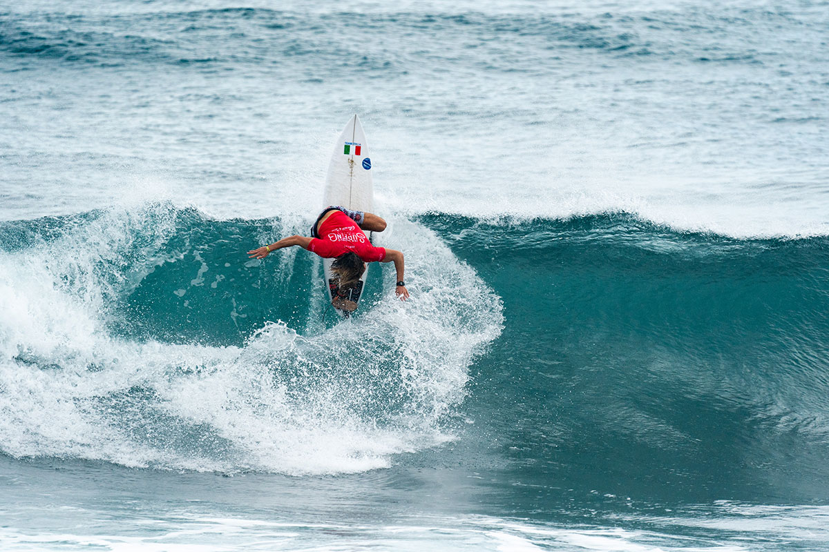 Troviamo poi le donne, con Daniela Boldini, alla prima convocazione in nazionale, ed Emily Gussoni, in 33esima posizione. Entrambe hanno superato i primi due round principali, ma sono uscite ai ripescaggi: la prima per 80 centesimi di punto in una batteria vinta dalla cinque volte campionessa WSL Carissa Moore, la seconda ha invece incontrato nel cammino Tatiana Weston-Webb ed è uscita da terza per 96 centesimi di punto dietro alla barbadoregna Chelsea Tuach.
