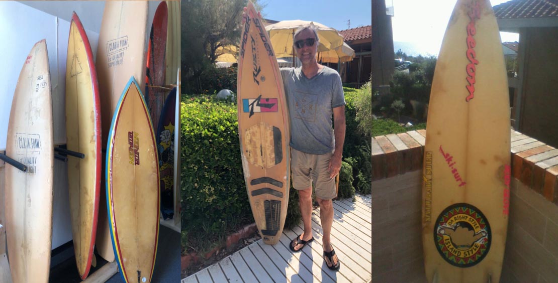 A partire dai primi anni ’80 i pionieri di questo tratto di costa hanno iniziato a costruirsi le prime tavole, raggiungendo in alcuni casi ottimi risultati. Non era facile, non si trovavano i materiali giusti e spesso anche le forme erano molto approssimative ma non c’era scelta: le prime “vere” tavole di importazione sarebbero arrivate solo a fine 1982 con l’apertura del primo vero surf shop italiano: Natural Surf.